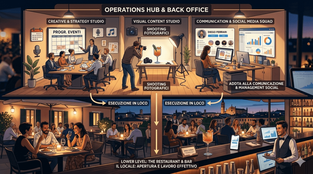 In diversi scambi di opinioni recenti, ho ribadito un concetto semplice: un bar o un ristorante è un’azienda a tutti gli effetti. Un tempo bastava aprire la porta, proporre un menu dignitoso e contare sul passaparola. Oggi non basta più. Per sopravvivere, un locale non deve avere solo location e personale, ma anche un “ufficio”: qualcuno che si occupi della comunicazione e della programmazione degli eventi. Questo lavoro di back office ha un unico grande obiettivo: far sì che tutto l’impegno profuso a porte chiuse si traduca in un locale pieno.